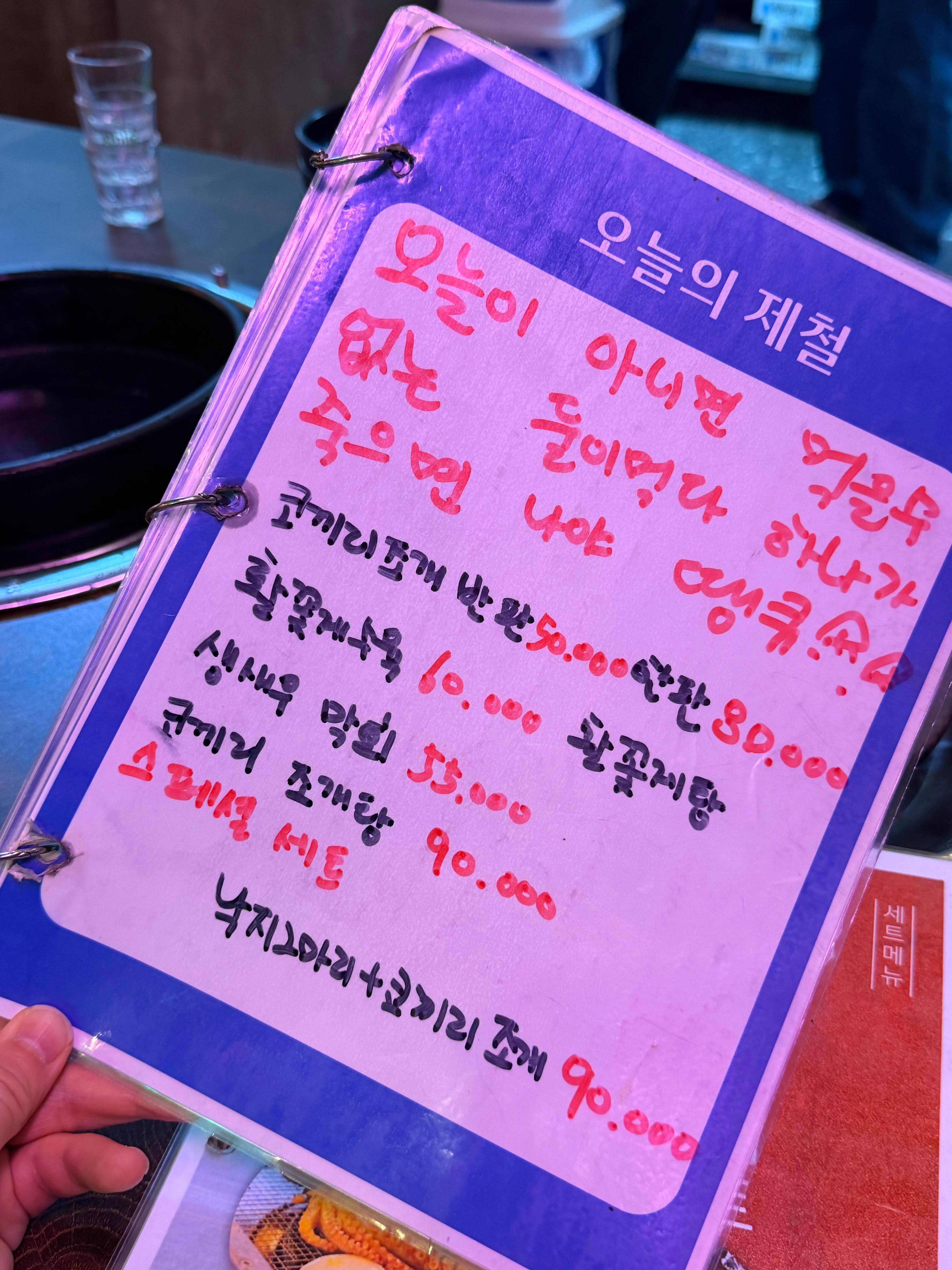 문어숙회, 그리고 돌멍게, 뿔소라 등등!
