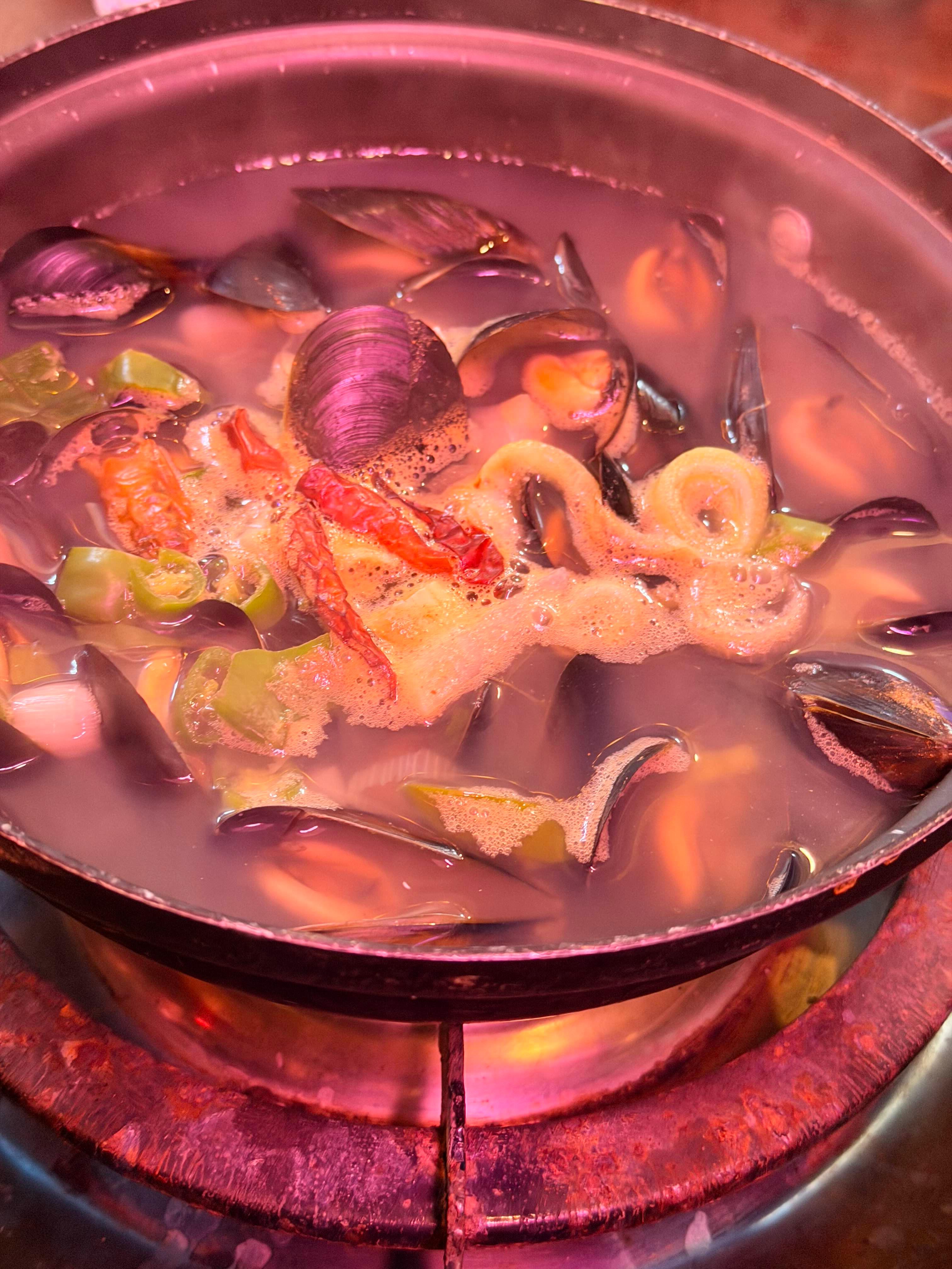 한쪽은 이렇게, 탕을 계속 끓이며 먹을 수 있고,