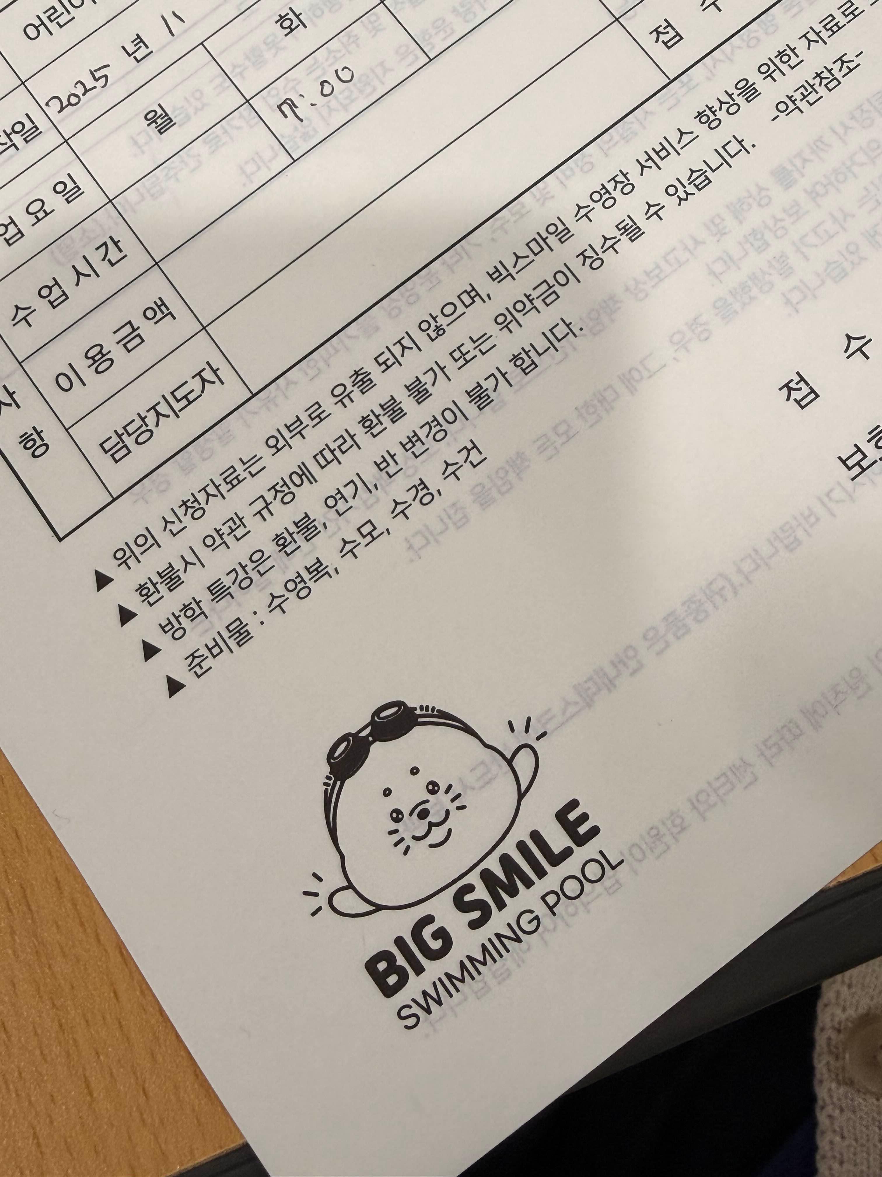 수영장 입회신청서! 쓰고 왔는데,