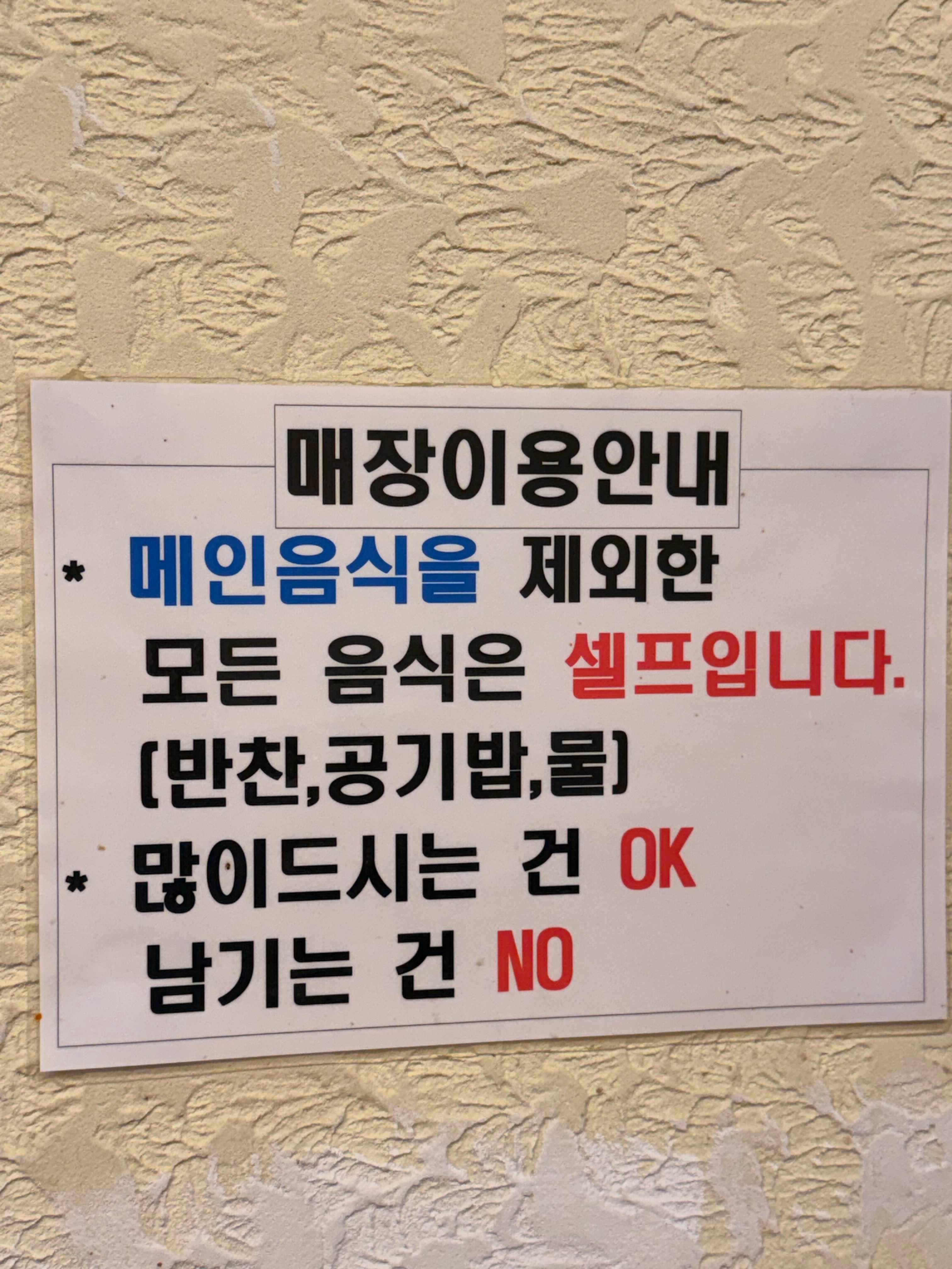 메인 음식을 제외한 모든 음식은 셀프! 반찬 공기밥, 물 등~!