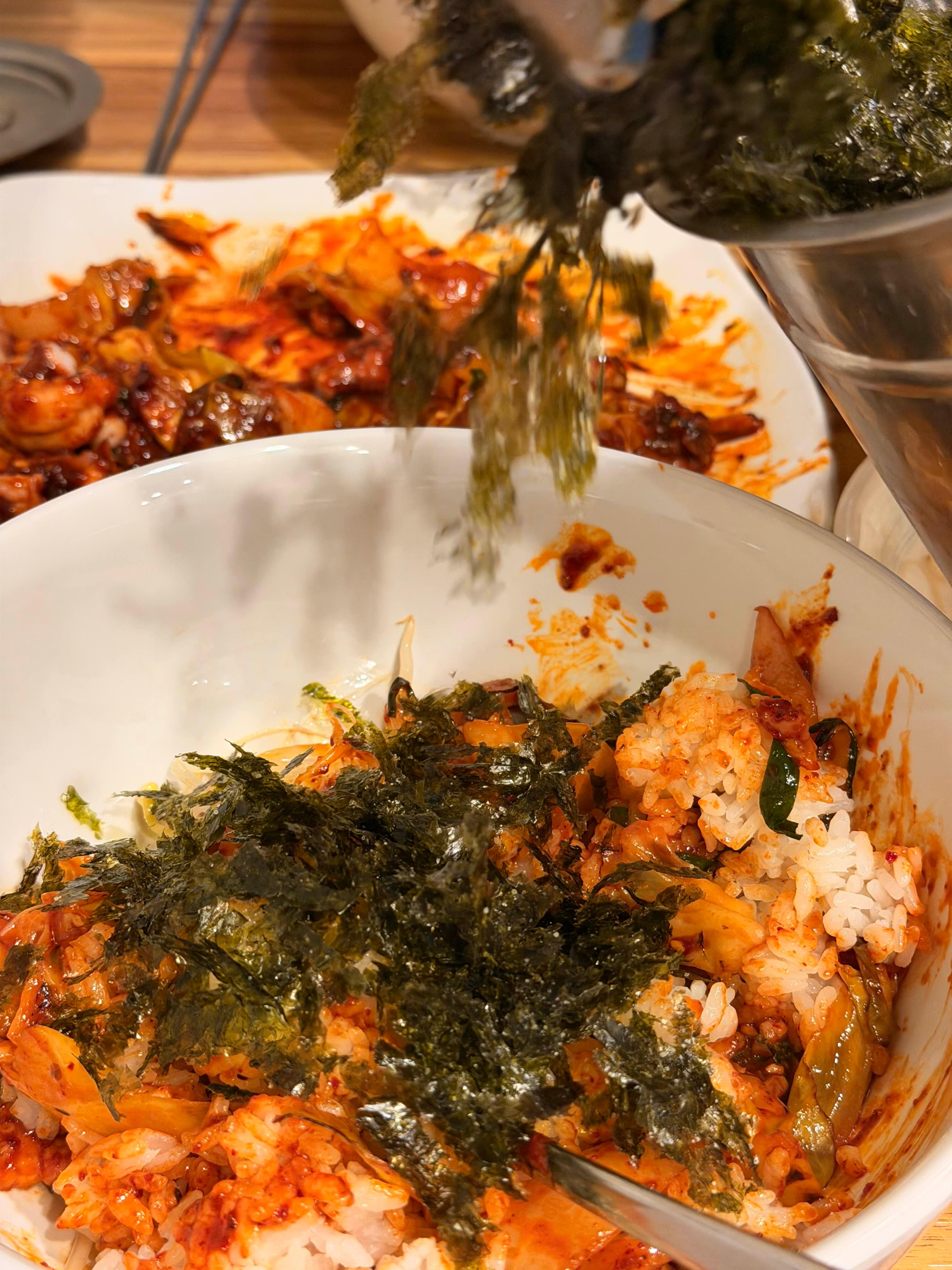 콩나물 넣고, 김가루 넣고, 매콤한 낙지 넣고~!