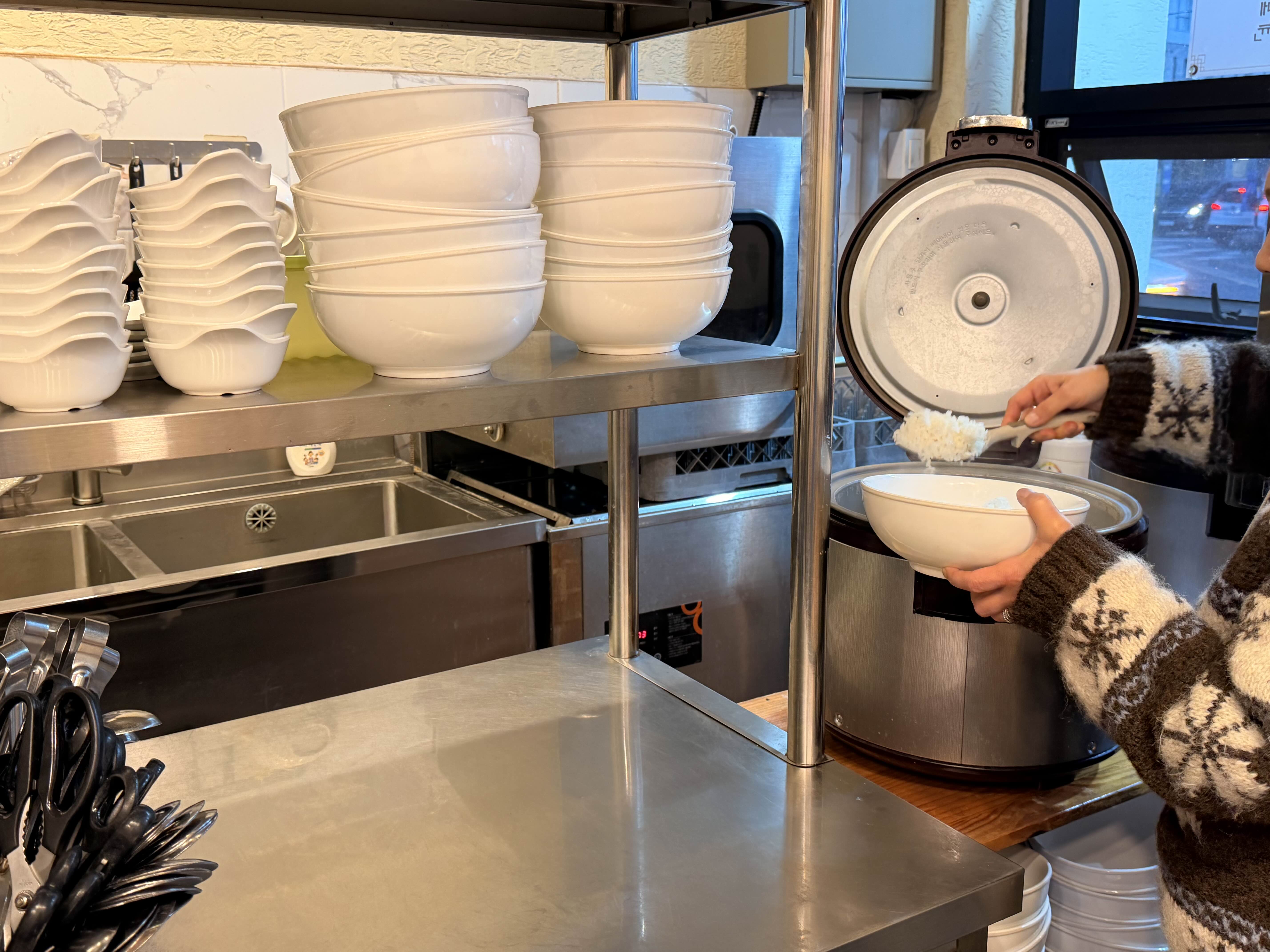 옆에 밥 (비벼먹는 큰 그릇)에 밥을 소분해 왔어요!
