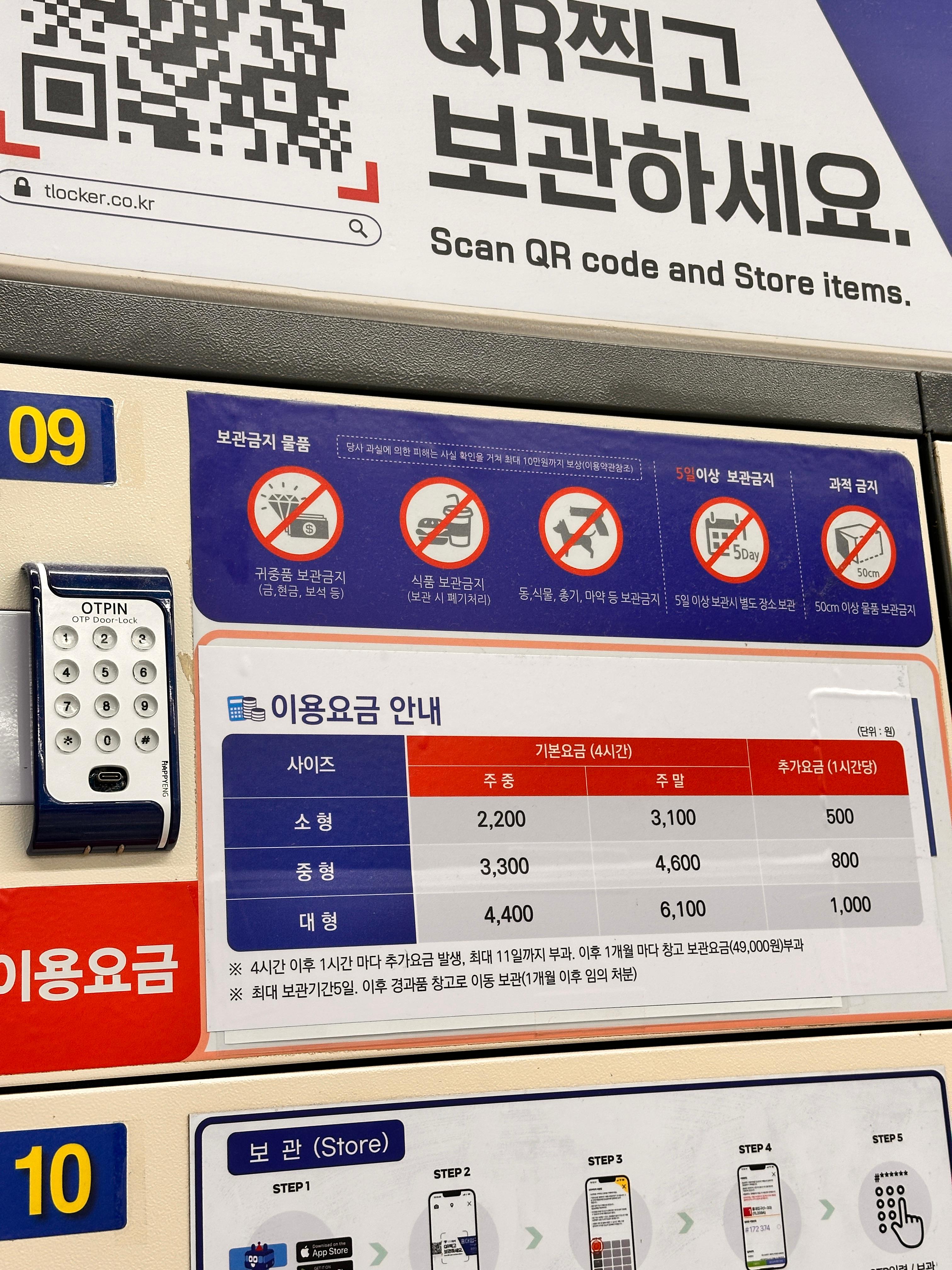 - 하루 이상 보관하면 추가요금 + 물품 폐기 가능성 있으니 주의!